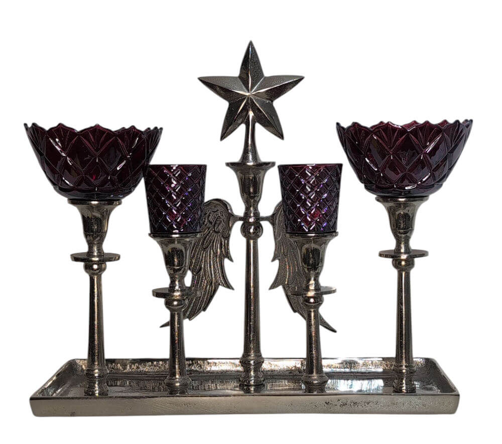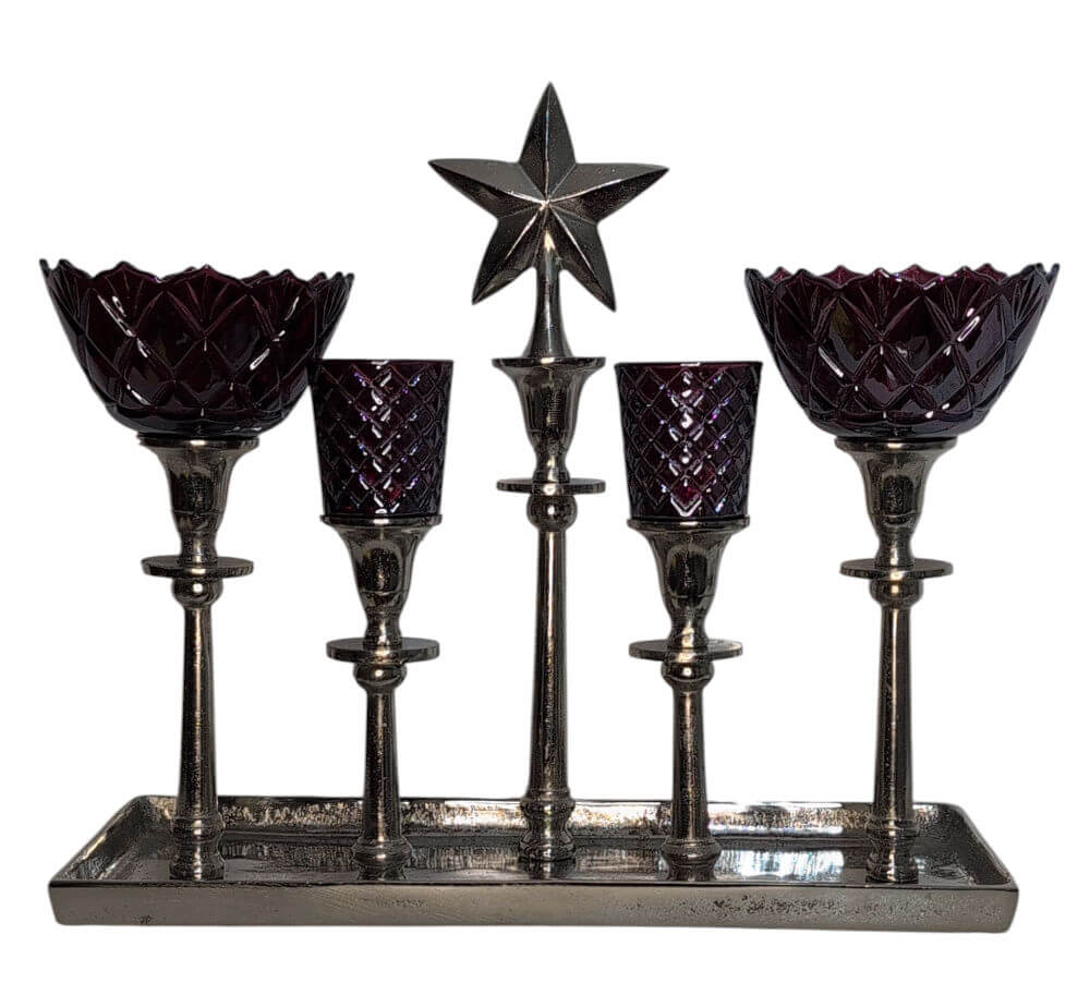 Sehr schöner Glasaufsatz mit Rauten in der Farbe Rot. Er passt sehr gut zu den Kerzenständern. Durch die Rauten zaubert er ein wunderbares Licht an die Wände. Er kann aber auch auf normale Kerzenständer gesetzt werden, da er unten einen Glaszapfen hat. Dieser hat einen Durchmesser von ca. 2cm. Außerdem hat er noch einen Gummiring zum Ausgleich drum, so das er auch auf etwas größere Öffnungen passt. Leuchter und andere Aufsätze nicht im Preis enthalten.